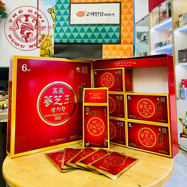 Nước Hồng Sâm Linh Chi Hàn Quốc KGS GOLD Hộp 30 Gói x 50ml là sản phẩm dinh dưỡng cao cấp được chiết xuất từ nhân sâm trên 6 năm tuổi kết hợp với nấm Linh chi Hàn Quốc rất tốt cho sức khỏe. Sản phẩm có thể sử dụng trực tiếp, không cần qua khâu chế biến nào vì thế rất tiện lợi.